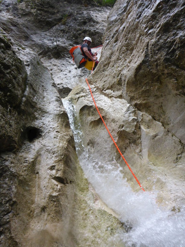 Alternativ der Abseilcanyon für Einsteigende. Er ist genial, für alle, die eine neue Fertigkeit erlernen möchten -das Abseilen in Canyons. Hört sich nicht nur abenteuerlich an, ist es! 2 bis 23 Meter geht’s per Seil runter. Und keine Sorge, Sie können selbstverständlich auch passiv abgelassen werden (Für die, die sich doch nicht trauen).